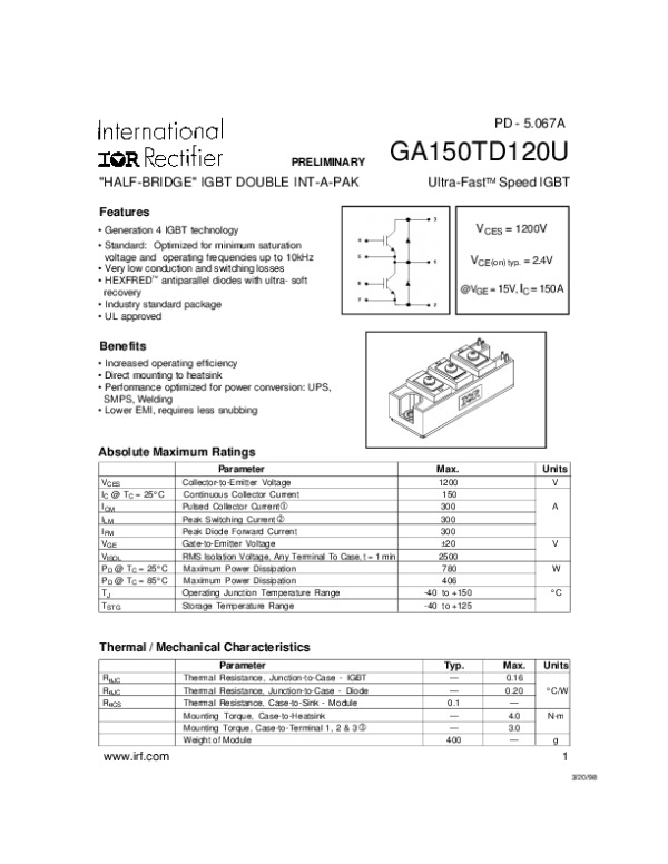 Datasheet GA150TD120U: