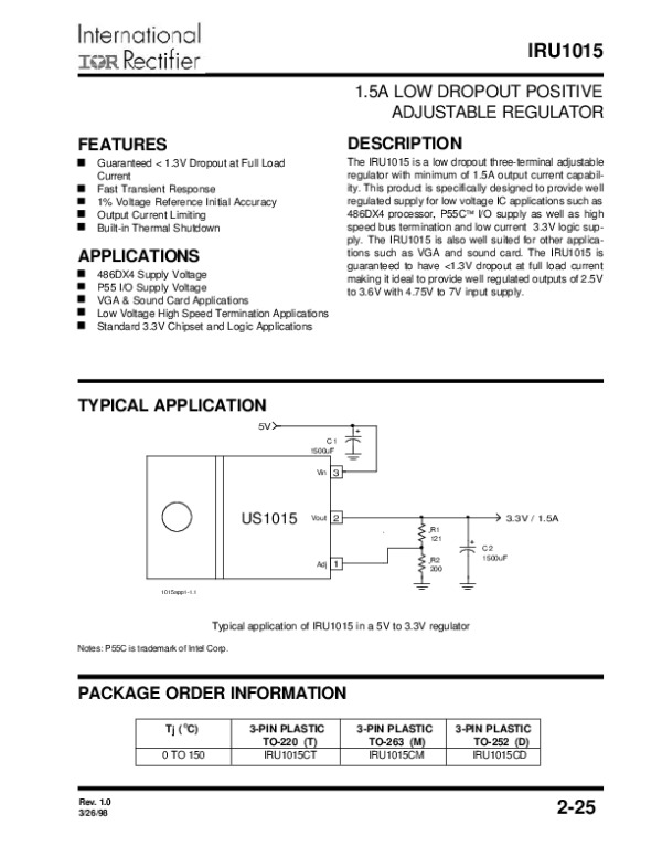 Просмотр технического описания на IRU1015
