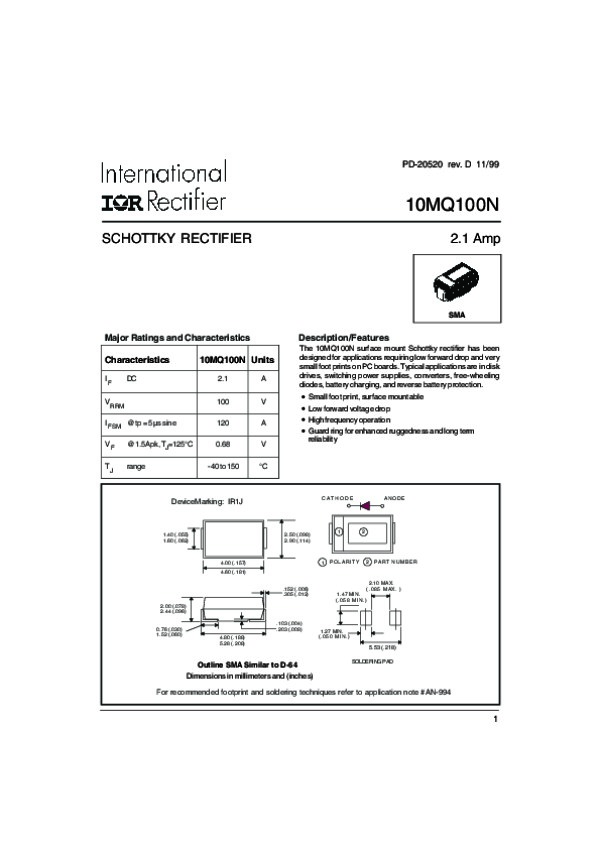 Datasheet 10MQ100N: