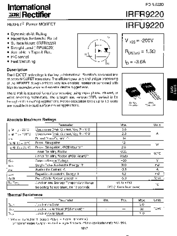 Просмотр технического описания на IRFR9220