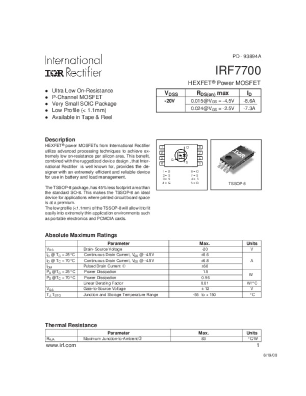 Просмотр технического описания на IRF7700