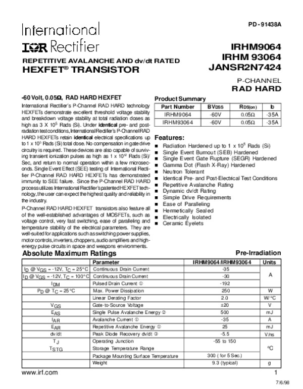 Datasheet IRHM9064: