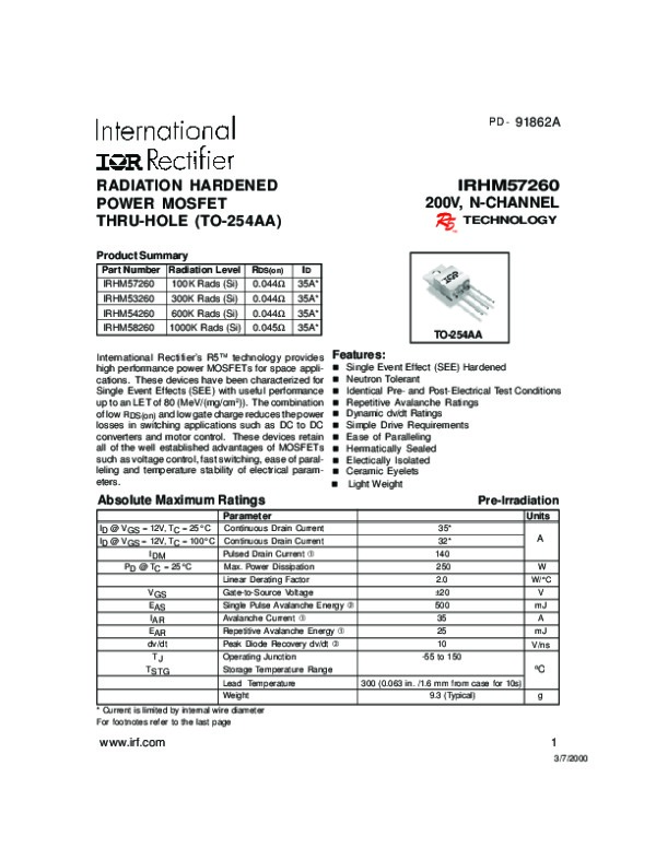 Datasheet IRHM57260: