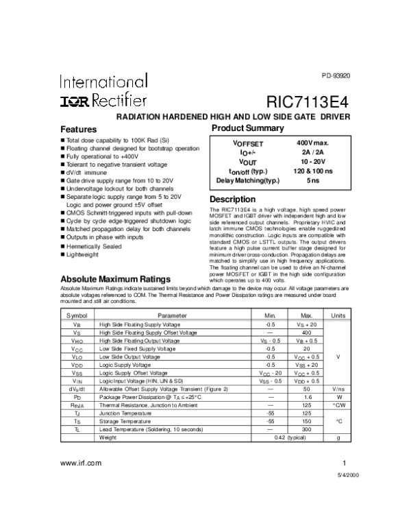Datasheet RIC7113E4: