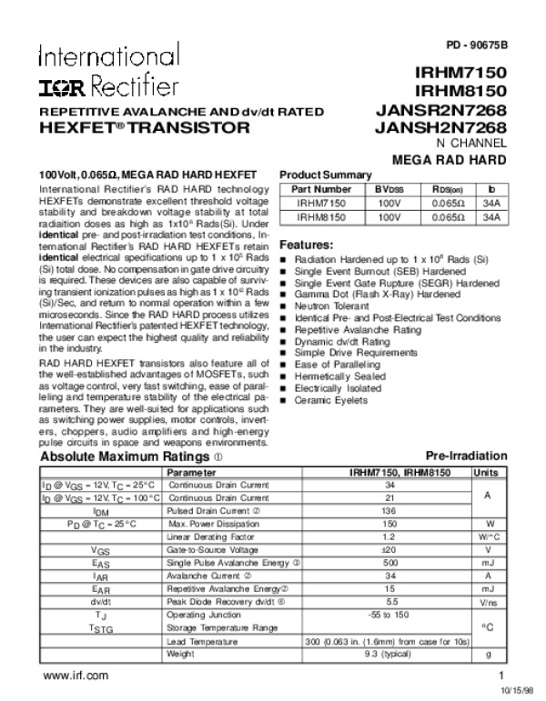 Datasheet IRHM7150:
