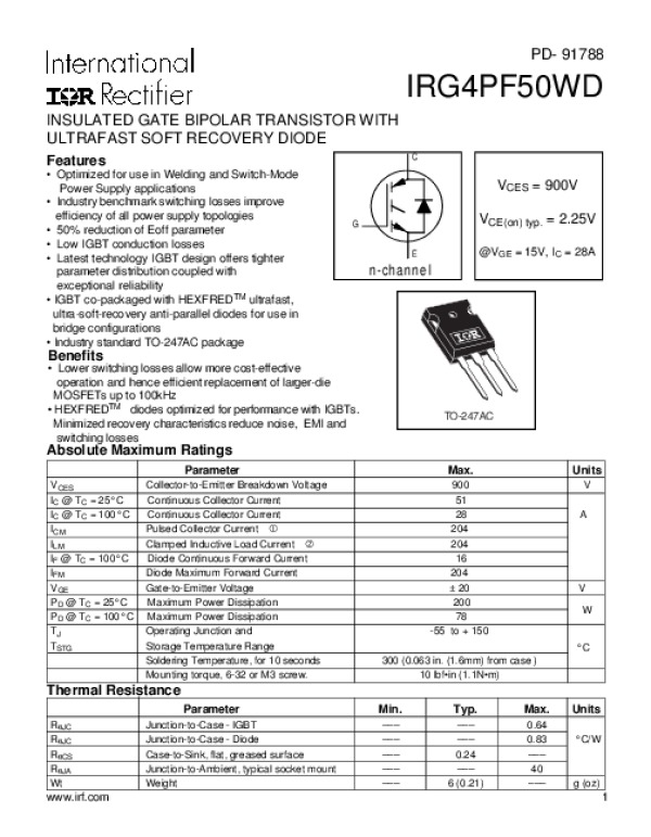 Datasheet IRG4PF50WD: