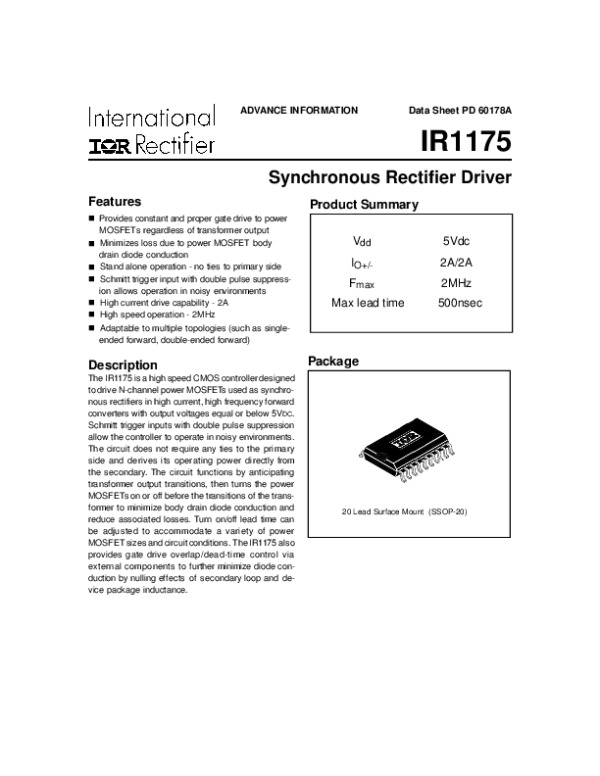 Просмотр технического описания на IR1175