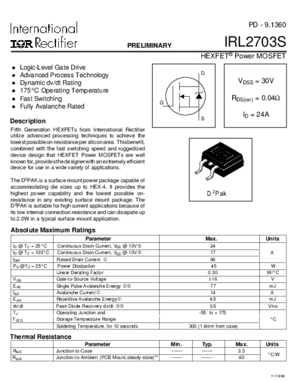 Datasheet IRL2703S: