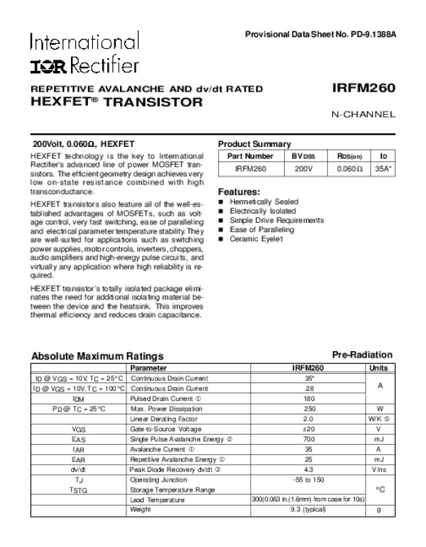 Datasheet IRFM260: