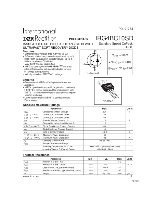 Datasheet IRG4BC10SD: