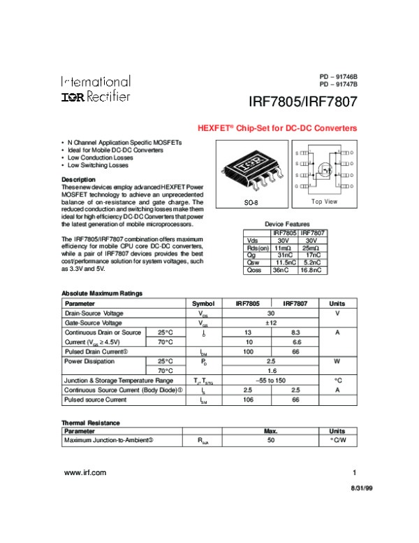 Просмотр технического описания на IRF7805