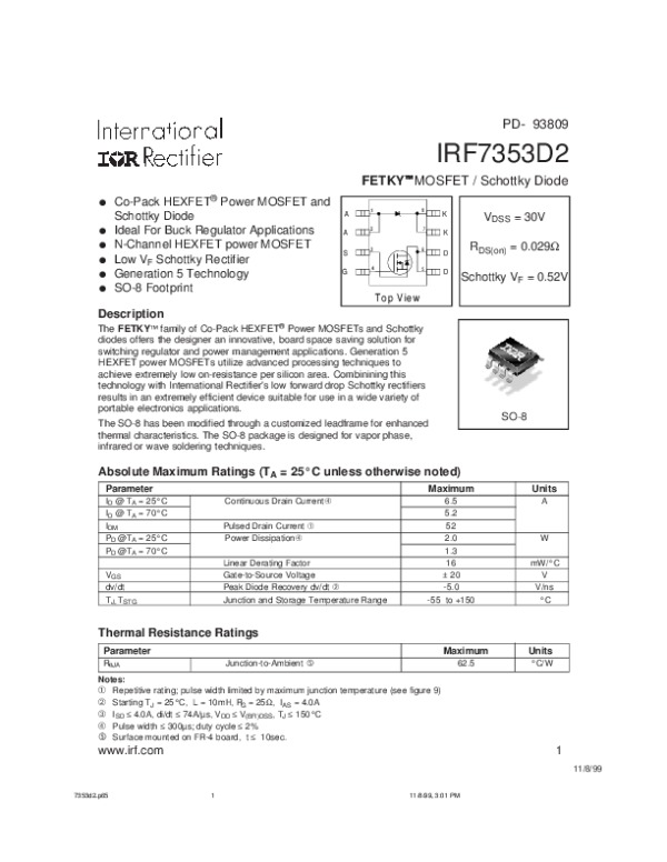 Просмотр технического описания на IRF7353D2