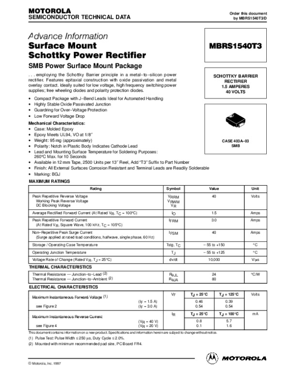 Datasheet MBRS1540T3REV0: