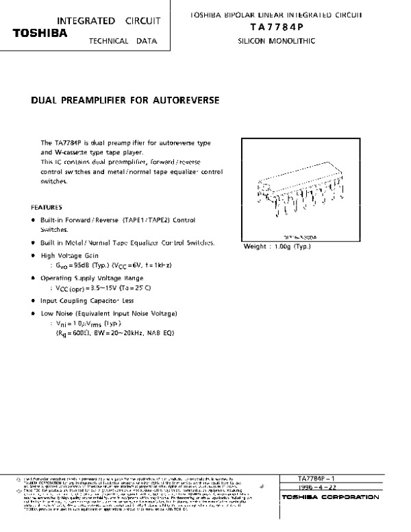 Datasheet TA7784P:
