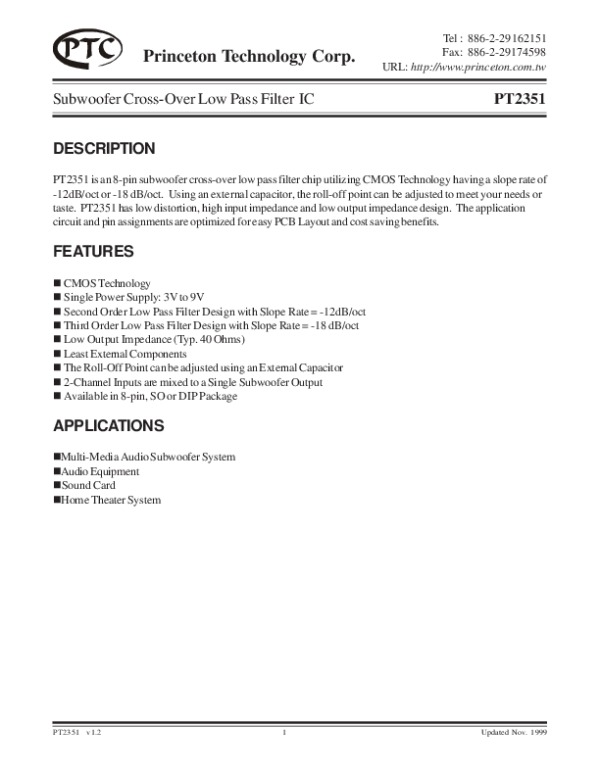 Datasheet PT2351S: