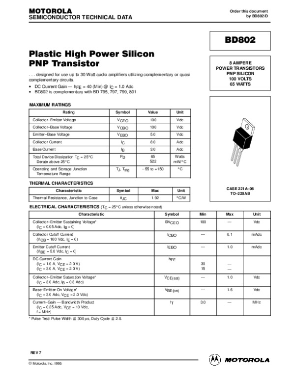 Datasheet BD802REV: