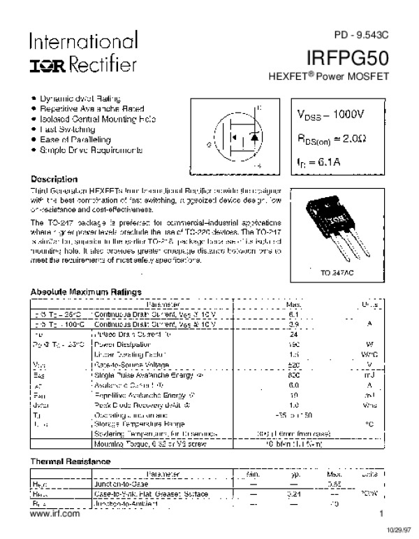 Просмотр технического описания на IRFPG50