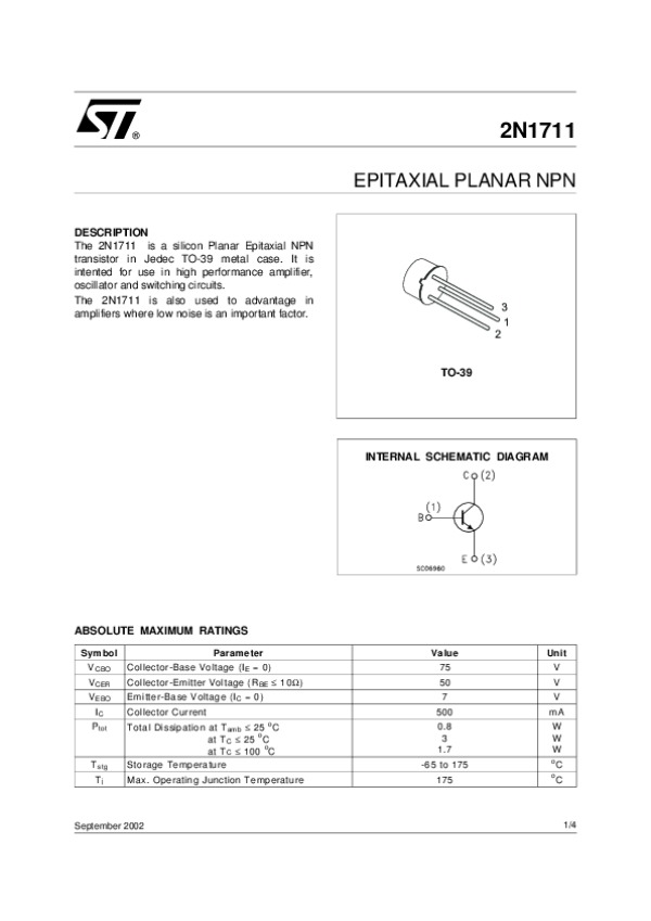 Datasheet 2N1711: