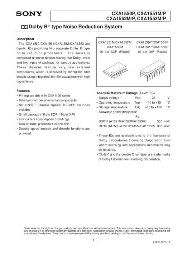 Просмотр технического описания на CXA155250