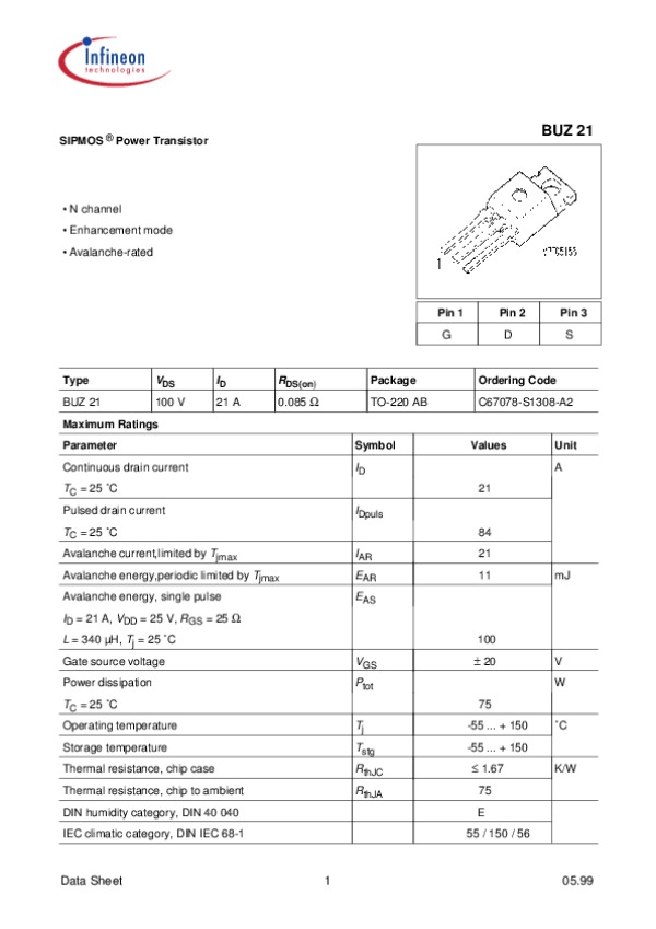 Datasheet BUZ21 (INFI):