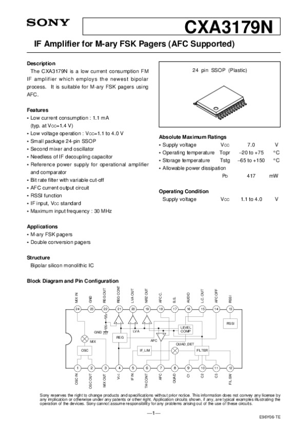 Datasheet CXA3179:
