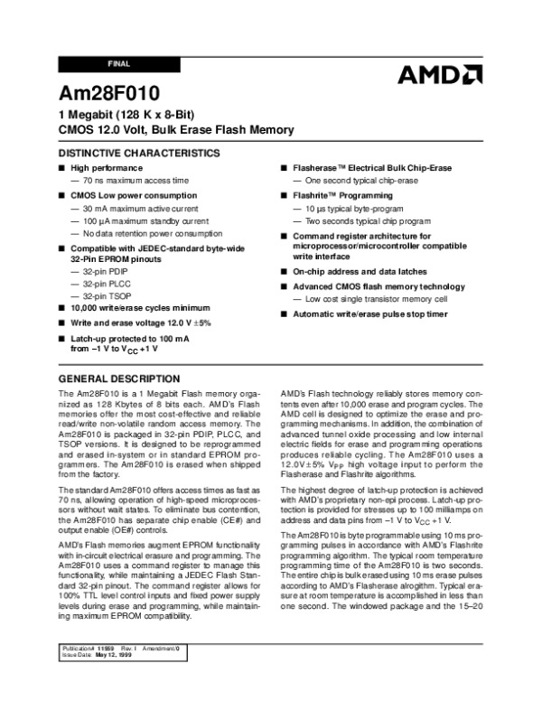 Datasheet AM28F010: