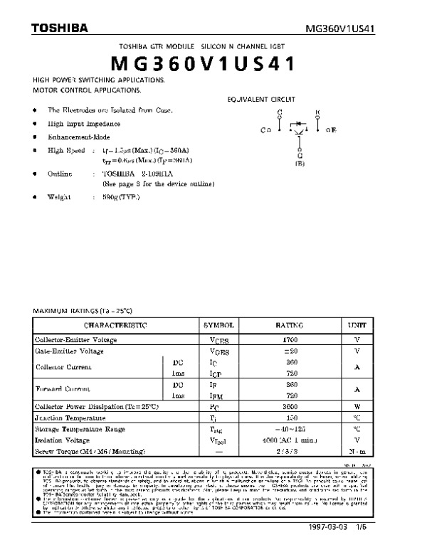 Datasheet MG360V1US41: