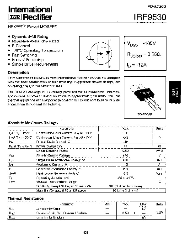 Datasheet IRF9530: