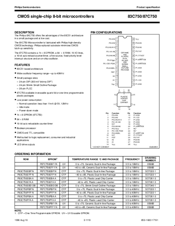 Просмотр технического описания на 83C750X