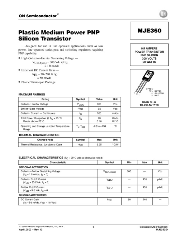 Datasheet MJE350D: