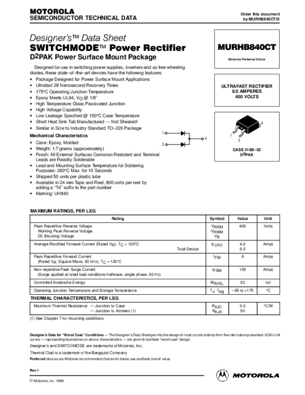 Datasheet MURHB840CTREV1DX: