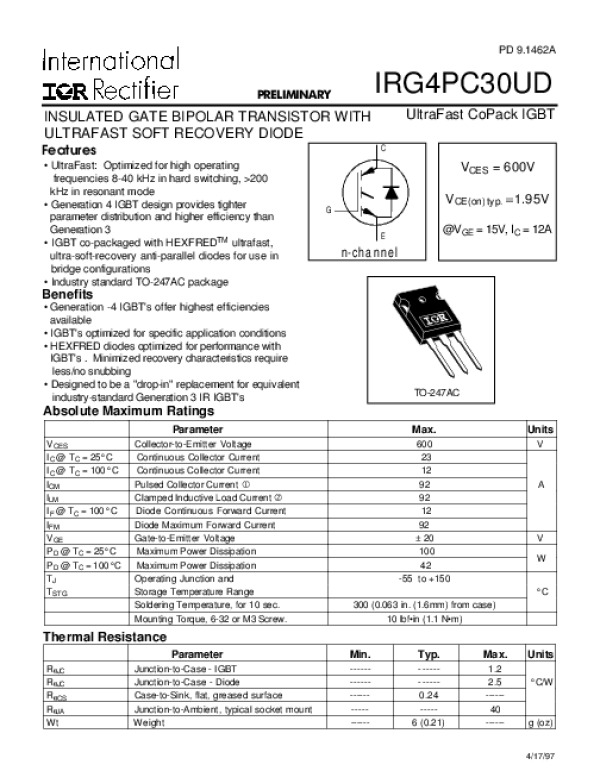 Главная -> Справочник -> Не указан -> Просмотр технического описания на IRG4PC30UD