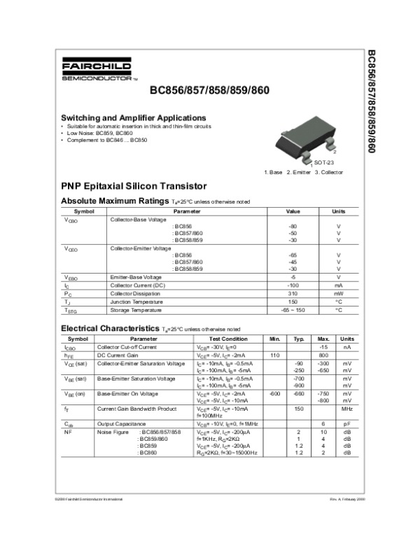 Datasheet BC856857858859860: