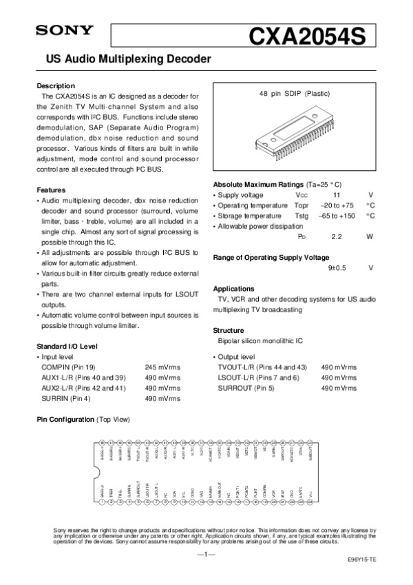 Просмотр технического описания на CXA2054