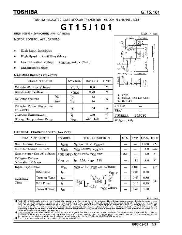 Datasheet GT15J101DS:
