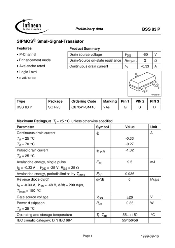 Datasheet BSS83INFI: