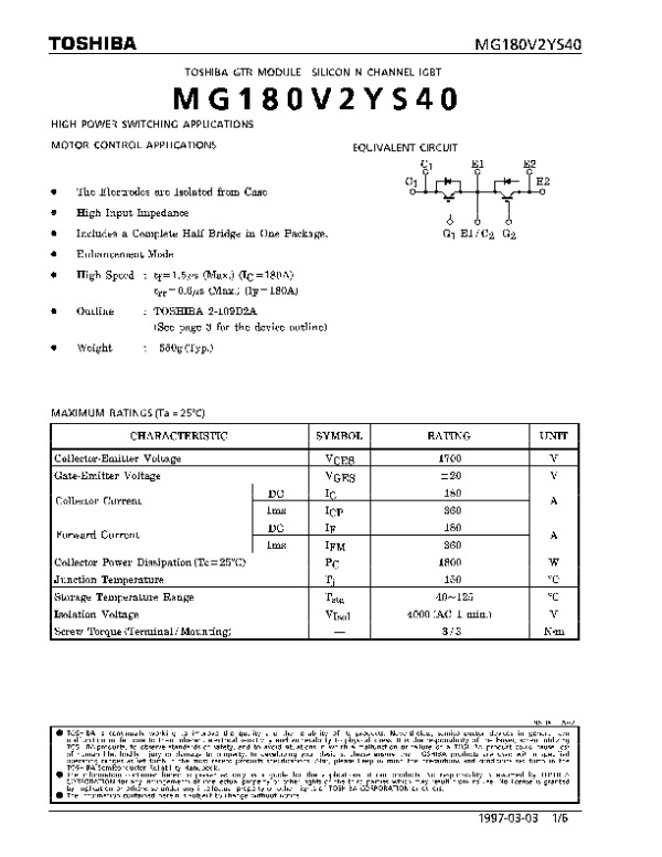 Datasheet MG180V2YS40DS: