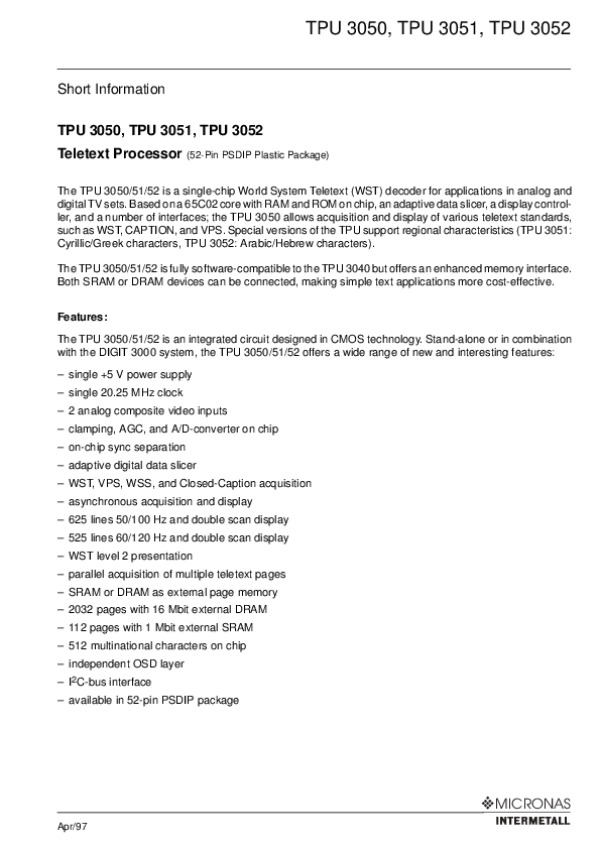 Datasheet TPU3050: