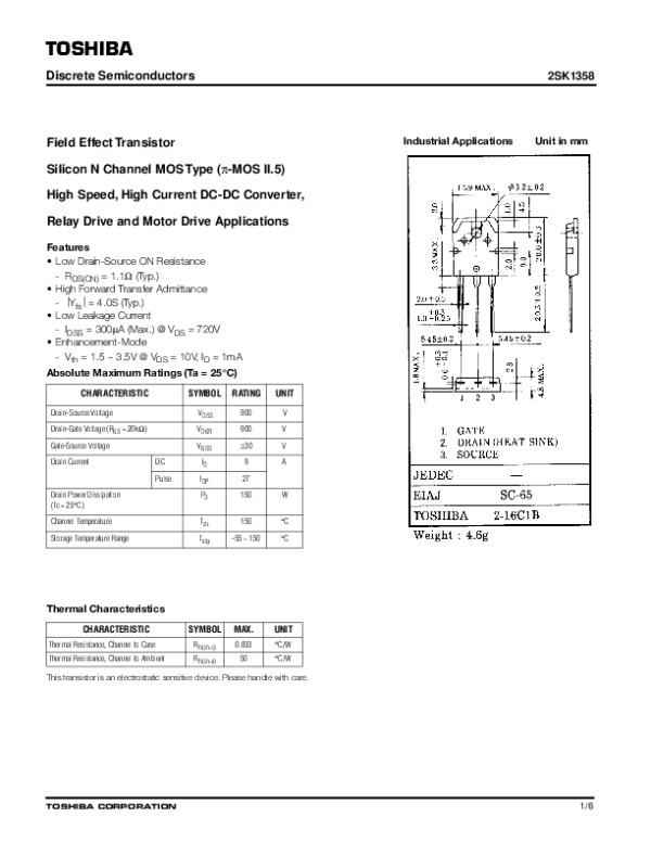 Просмотр технического описания на 2SK1358
