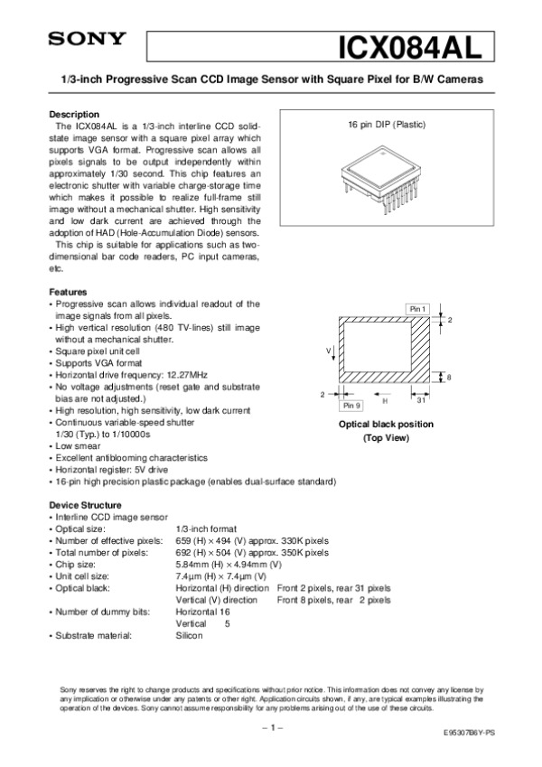 Datasheet ICX084: