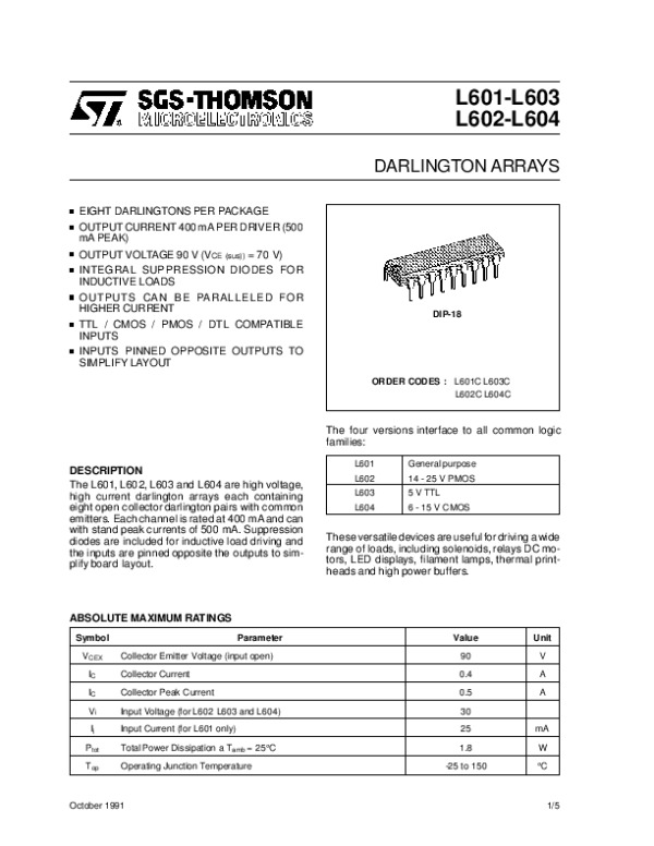 Datasheet L601L604:
