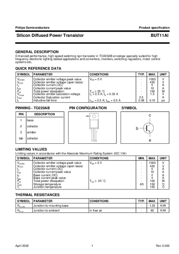 Просмотр технического описания на BUT11AL