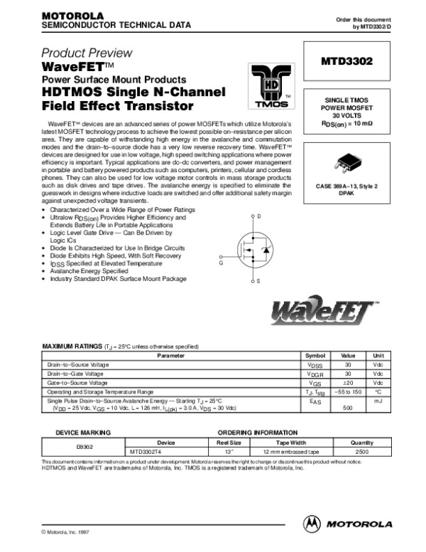 Datasheet MTD3302: