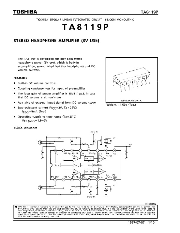 Просмотр технического описания на TA8119P