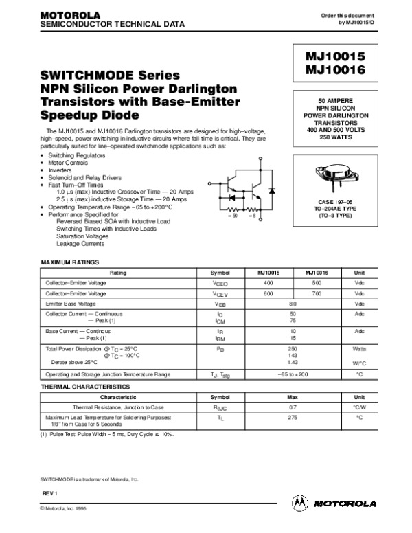 Datasheet MJ10015R:
