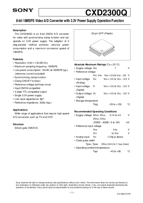 Datasheet CXD2300Q1: