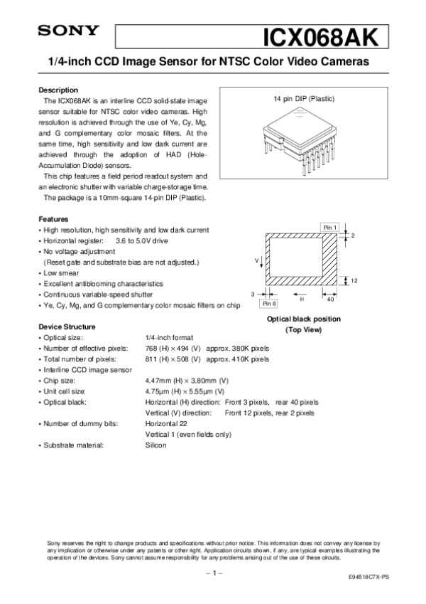 Datasheet ICX068AK:
