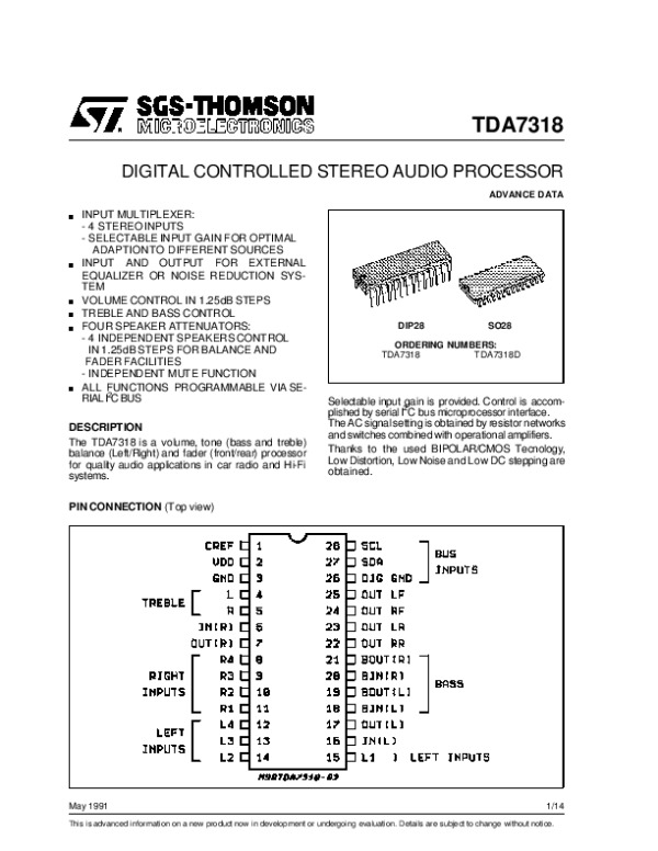 Просмотр технического описания на TDA7318