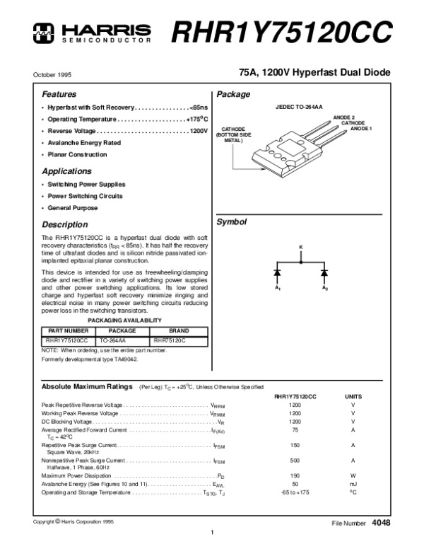 Просмотр технического описания на RHR1Y751