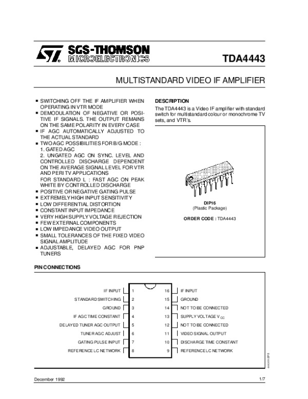 Просмотр технического описания на TDA4443